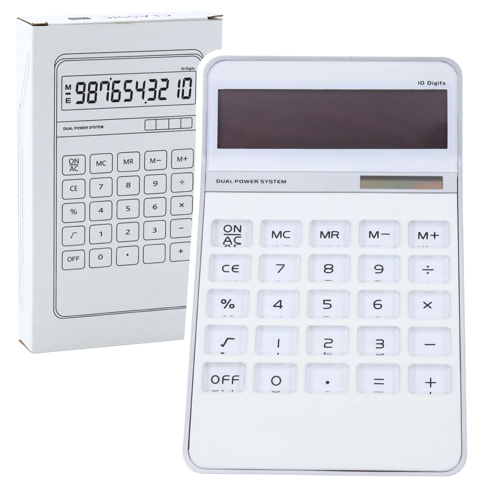 Ergonomic design, large buttons, and a clear 10–12-digit display make longer calculations easier. Durable materials, protective covers, and non-slip feet ensure long service life in a school bag. Practical functions such as M+/M− memory, GT, rounding, changing the number of decimal places, and auto power-off save time and energy. For elementary grades we recommend simple school calculators with 8–12 digits and a percent function; for middle and high school, scientific calculators with statistical and trigonometric functions. Compact pocket models are lightweight and portable, while dual power (battery + solar panel) ensures reliable operation. School calculators are essential school supplies that support learning in math, physics, and chemistry.