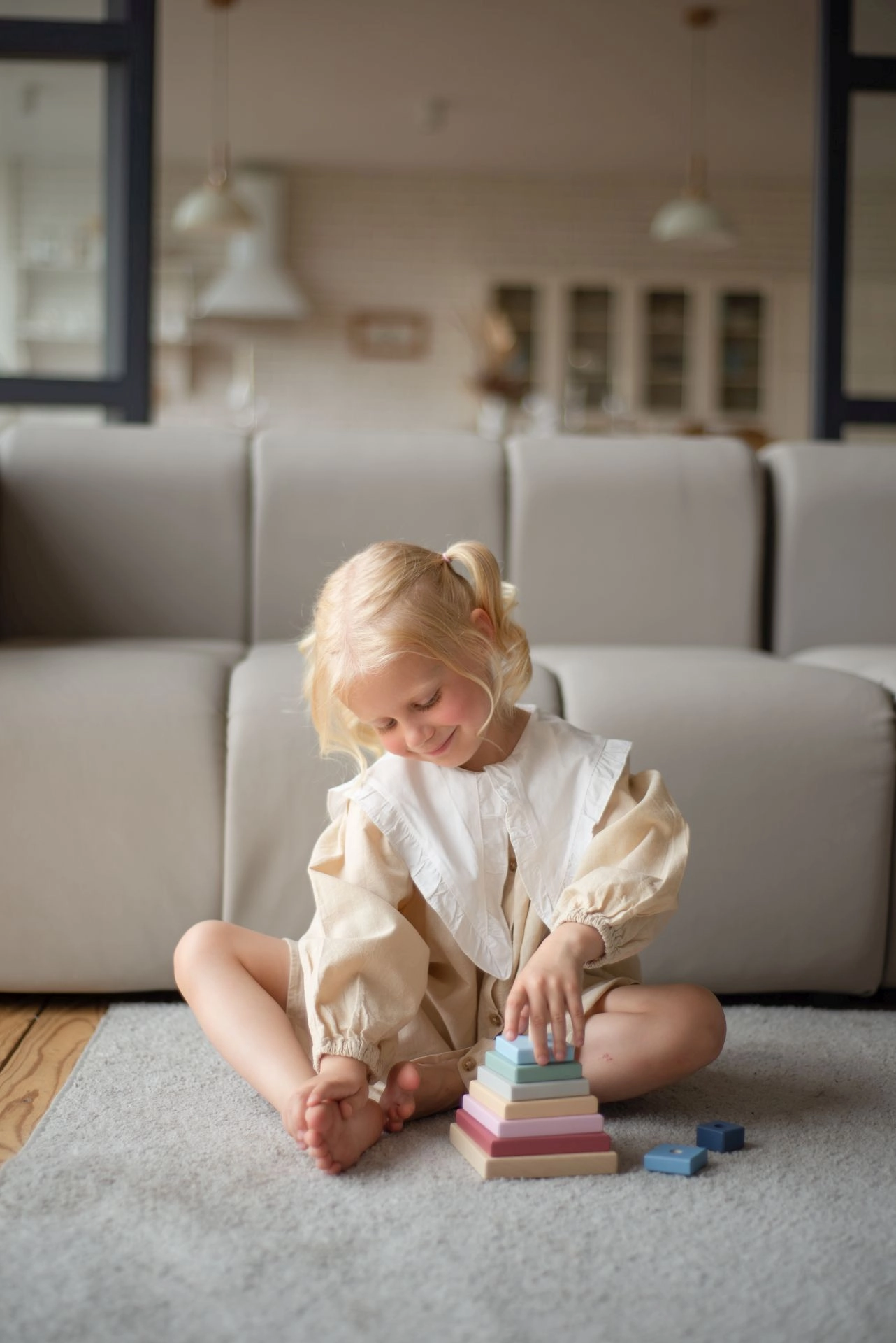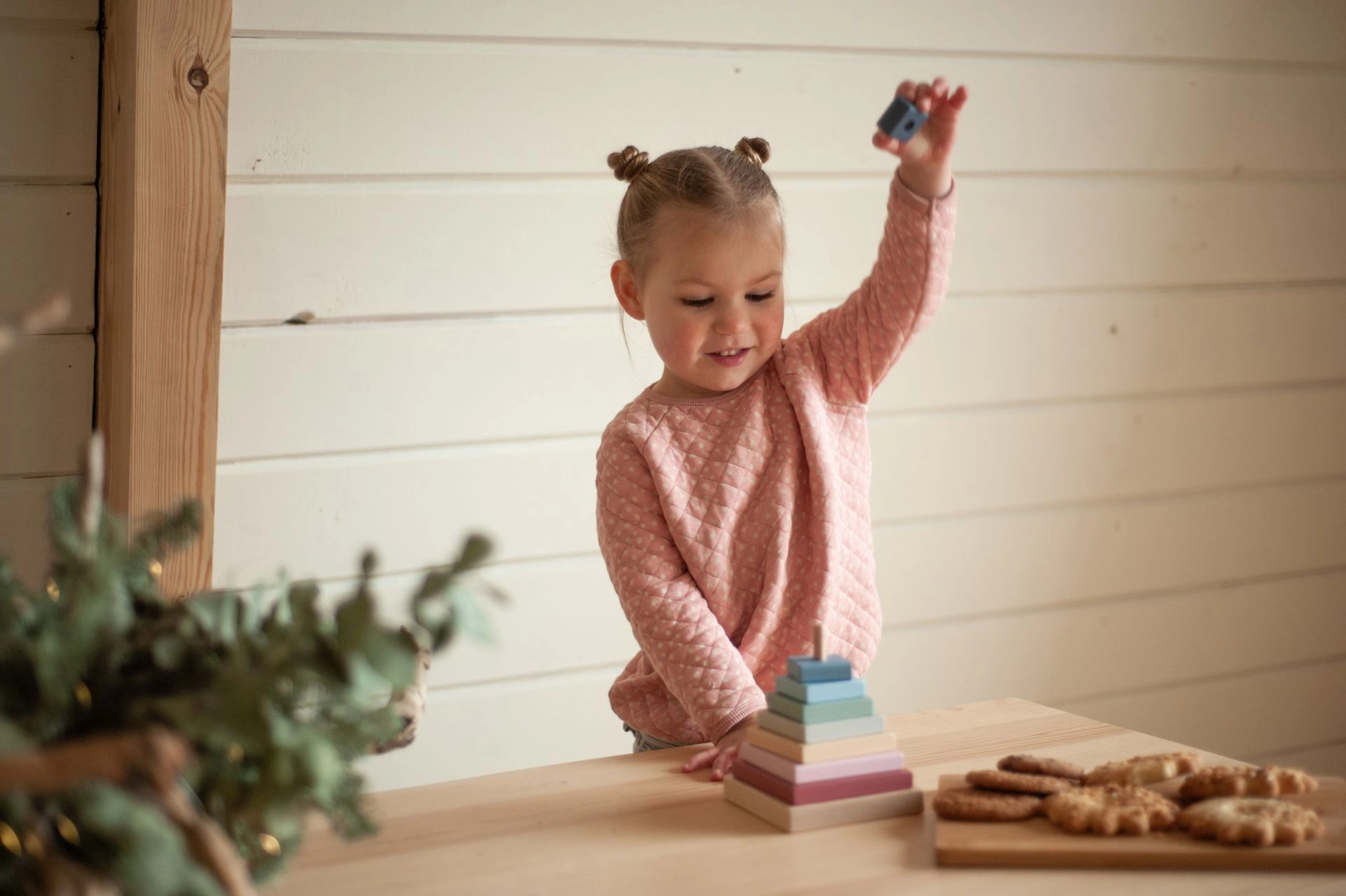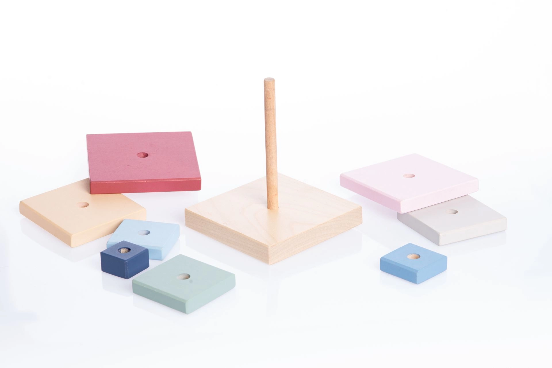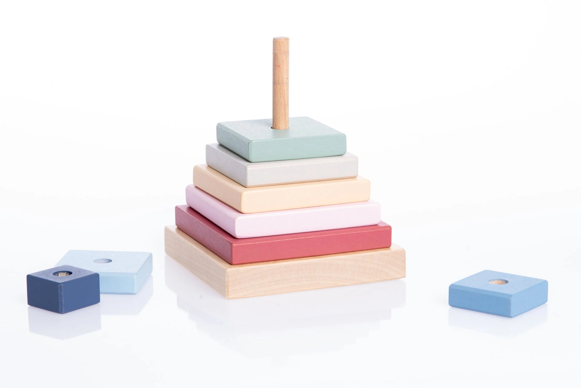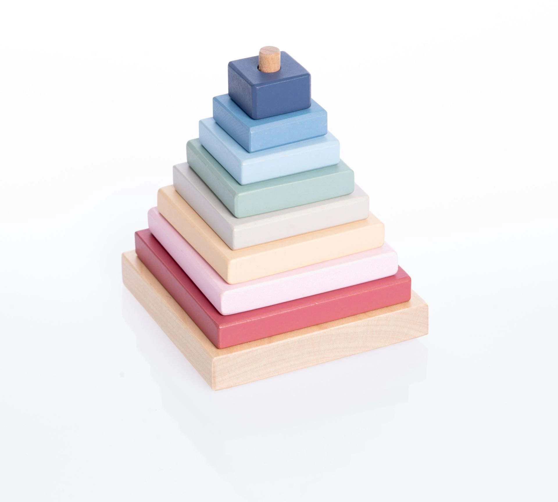 Cubika pastel-colored pyramid – wooden stacking toy, 9 pieces