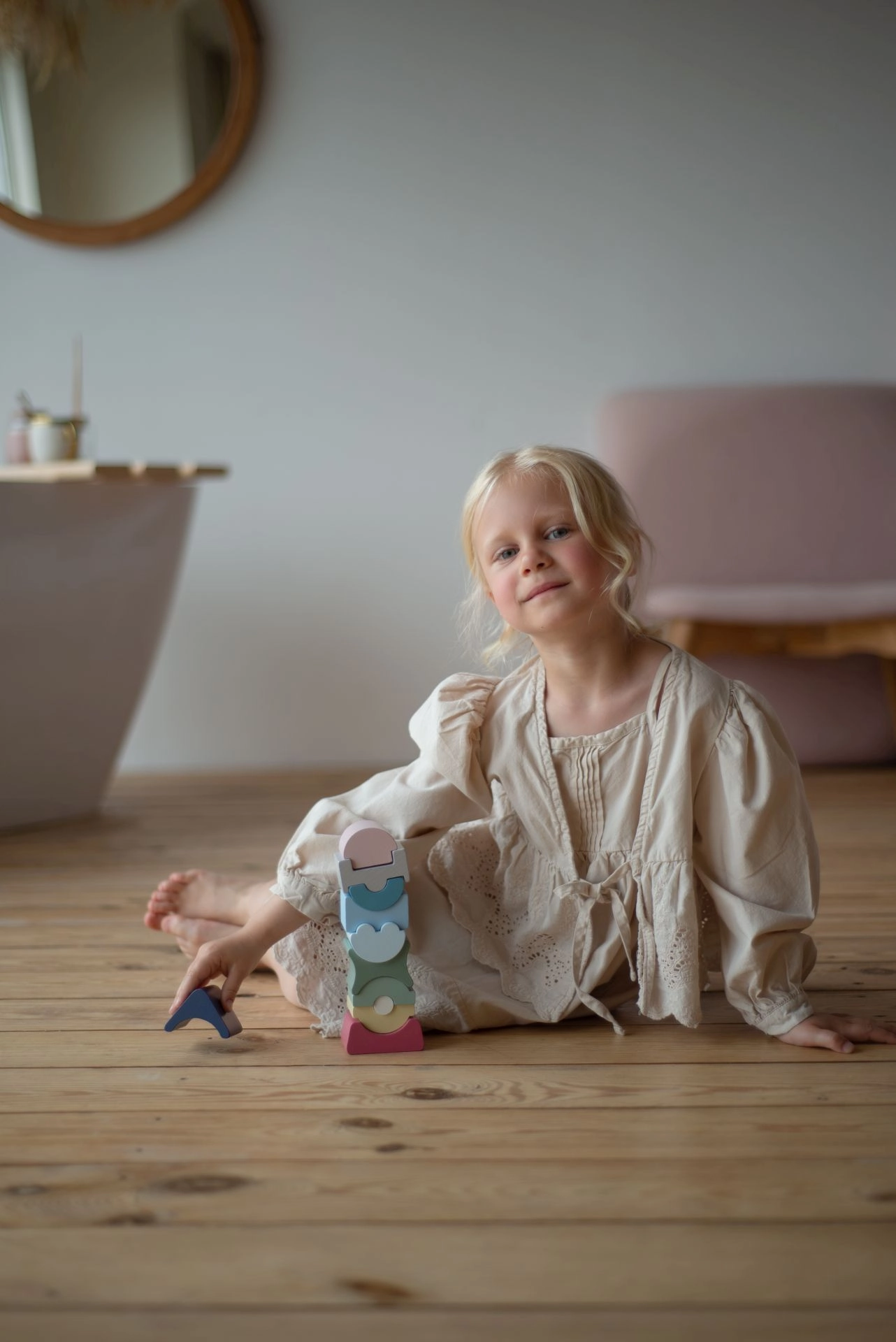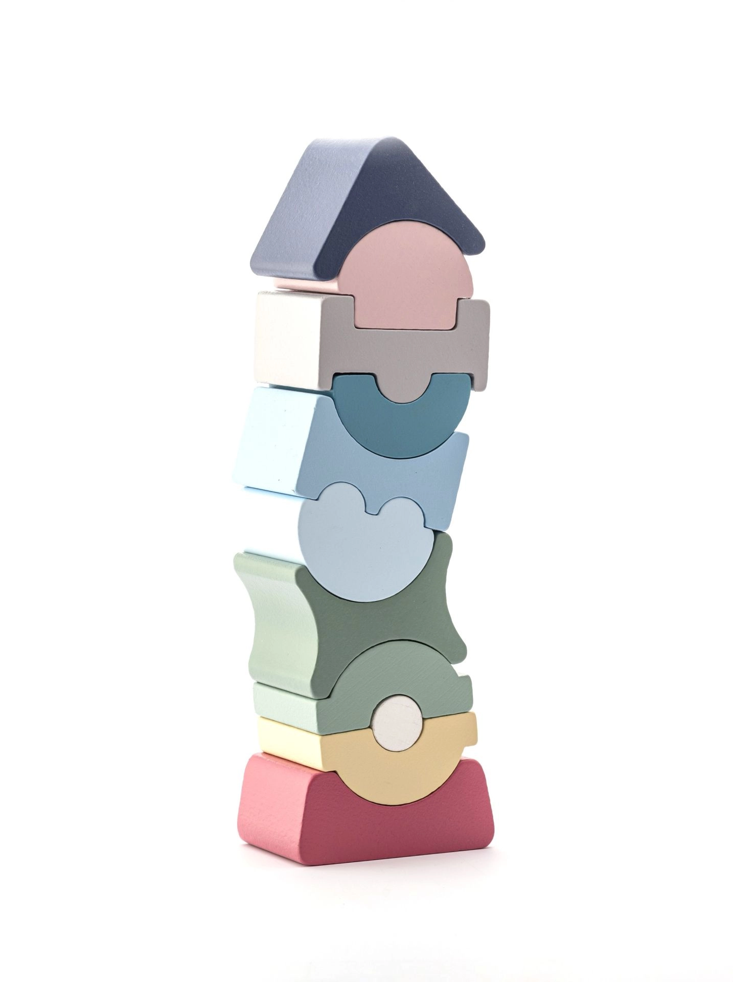 Cubika pastel balancing tower – wooden puzzle, 11 pieces