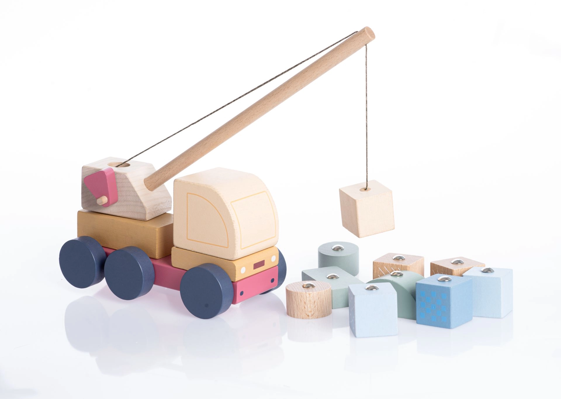 Cubika pastel crane truck with magnet – wooden puzzle 14 pieces