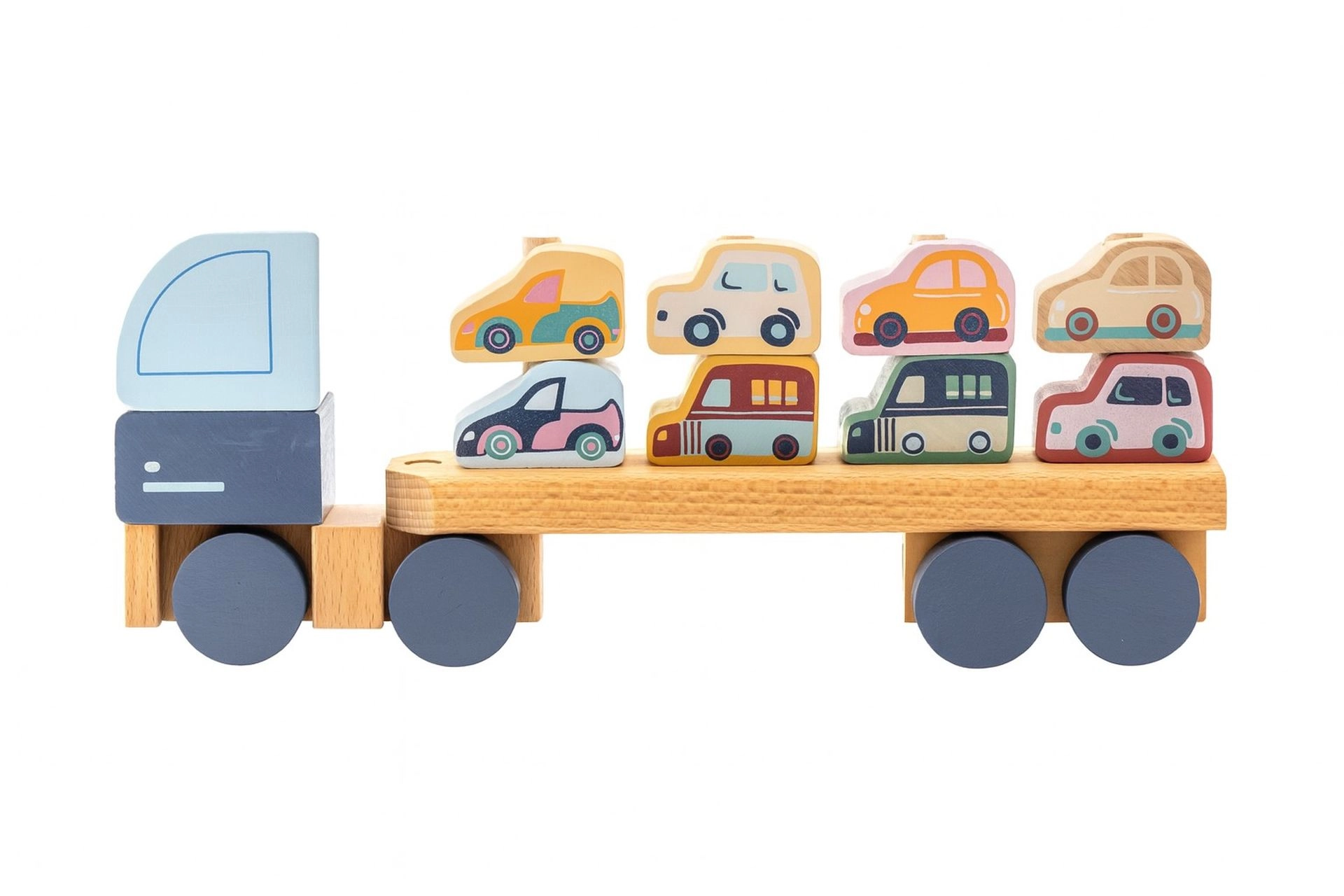Cubika pastel truck with cars – wooden puzzle 12 pieces
