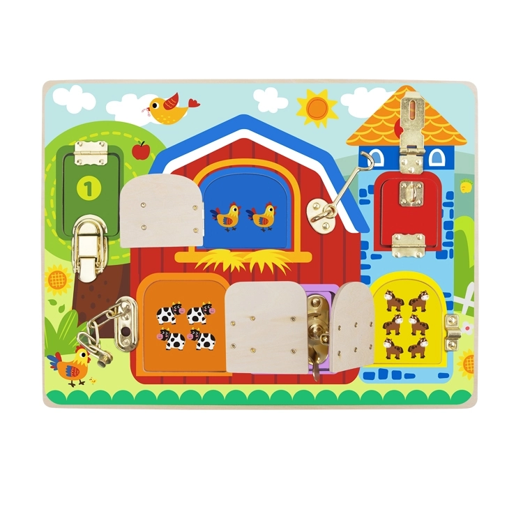 Wooden Manipulative Board with Locks Farm – Tooky Toy