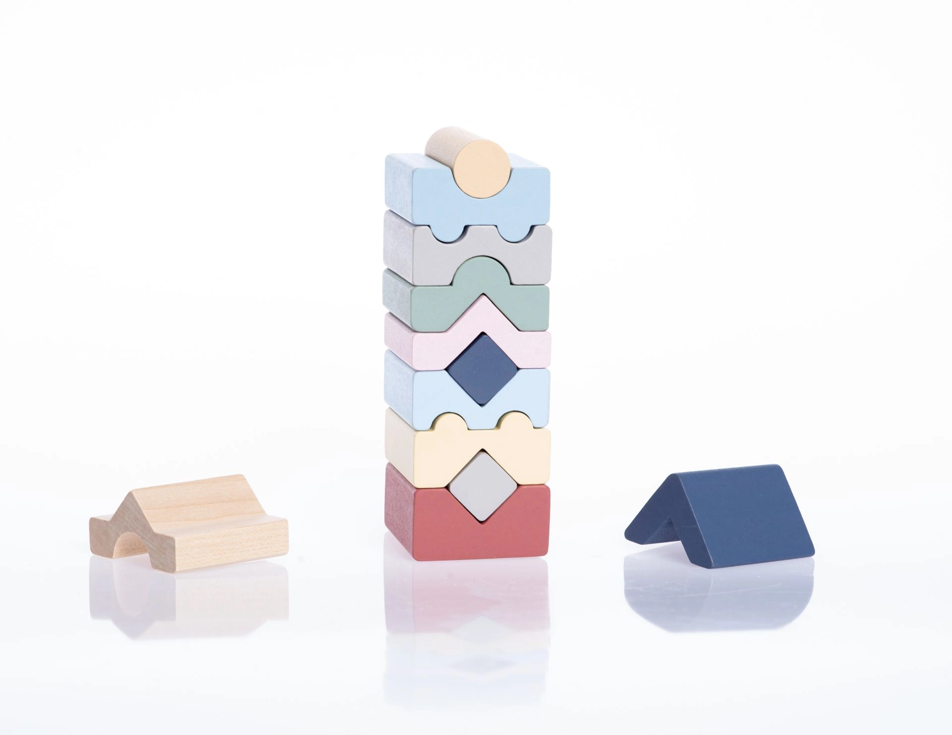 Cubika Pastel Tower XI – wooden stacking toy 12 pieces