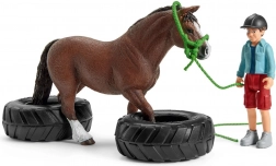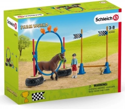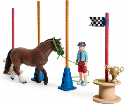 Prepare your Welsh pony for the agility race and see if it can overcome all obstacles confidently. This set includes everything needed for a realistic training experience, including a boy figure, riding helmet, obstacles with start-finish flags. Details are typical of Schleich and bring rural life closer.