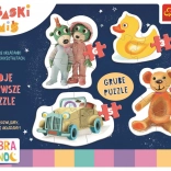 The adorable “Good Night” baby puzzle set brings favorite TREFLÍCI characters and their toys in four separate images. Each puzzle has a different number of pieces (3, 4, 5, and 6), allowing the child to progress gradually and gain confidence while assembling.