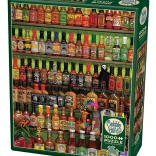 The Spice Sauces Puzzle with 1000 pieces from Cobble Hill brand offers a unique experience thanks to its non-traditional die-cut that doesn't resemble standard grid patterns. The result is a higher level of difficulty that emphasizes patience and careful attention to detail while assembling.
