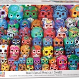 Challenge your skills with these unique Eurographics Puzzle Traditional Mexican Skulls with 1000 pieces, featuring unusual shapes and higher difficulty thanks to a special die-cutting technology.