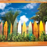 Enjoy focused moments with the EUROGRAPHICS Surfer’s Paradise puzzle. Thanks to a unique die-cut that does not follow a standard grid, the pieces have unusual shapes, and corners or edges aren’t always aligned. This makes it a great choice for avid puzzlers looking for a more demanding and entertaining challenge.