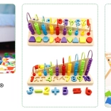 Besides the abacus, the set also includes colorful wooden shapes and numbers. Support shape recognition and number orientation.
