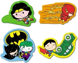 The first steps into the world of puzzling are easy even for the youngest thanks to a set of four shaped puzzles with favorite Justice League heroes. Each puzzle has a different number of pieces (3, 6, 9, 12), so the child naturally progresses from simpler to more challenging compositions and builds healthy confidence.