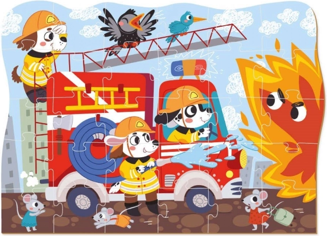 Support fine motor skills, logical thinking, and focus with a beautifully illustrated kids’ puzzle with a firefighting theme. Thanks to the contour border, children can orient themselves more easily and gain confidence in assembling more quickly. After completion, the scene can be connected with other images from the Transport series (farm, space, construction site, etc.) to build their own world of vehicles.
