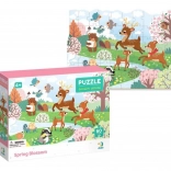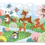 The fun DODO kids' puzzle with a spring awakening theme brings 60 pieces, beautiful illustrations, and a practical outline border. The completed picture measures 32 × 23 cm and can be connected to other scenes from the Seasons series. Ideal for children aged 4+.