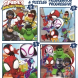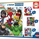 The progressive puzzle set SPIDEY and His Amazing Friends 4-in-1 brings kids the joy of assembling while subtly teaching focus and patience. Four different jigsaws with 12, 16, 20, and 25 pieces allow a smooth transition to more challenging images and support the development of logical thinking.