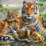Discover a beautiful puzzle with a wild nature theme. The illustration of a tigress with her cubs stands out with fine details and rich colors. Assembling 1000 pieces offers a pleasant challenge for all puzzle lovers and a relaxing activity for long evenings. Once completed, it forms an image measuring 69.3 × 49.3 cm, ideal for framing.