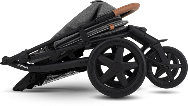 Safety first – the stroller is equipped with 5-point harnesses with soft pads, a removable bumper bar, and reflective elements for better visibility at dusk. It complies with EN 1888, verified by the independent Intertek laboratory. The central brake ensures stable parking.