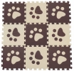 Practical foam floor puzzle in a beige-brown design with a paw print motif creates a pleasant and safe place for children to play. The pieces do not slip thanks to the textured surface; the material is soft, washable, and non-toxic, and it also reduces noise and insulates well against cold. Piece size 29.5 × 29.5 cm, thickness 0.9 cm. Suitable for children aged 3+.