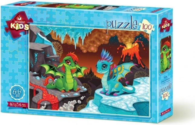 A fun children’s puzzle featuring adorable little dragons includes 100 pieces and measures approx. 48 × 34 cm when completed. Ideal for developing fine motor skills, patience, and logical thinking.