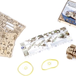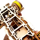 This is a mechanical model that assembles without glue or tools, offering the advantages of simplicity and eco-friendliness thanks to birch plywood construction. An illustrated manual is included to make assembly easier. It requires minimal accessories such as a snap-off knife and wax for smooth operation.