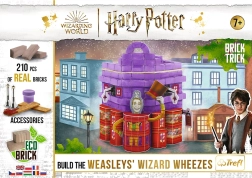 Create a magical corner at home with the colorful shop of twins Fred and George. The Brick Trick set combines real materials—mini bricks and wooden planks—with decorations that give the build character. Step by step, you’ll construct the building from the foundations to the finished model, then embellish it with the included elements.