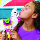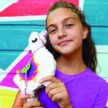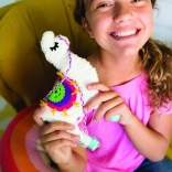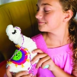 Includes all materials needed to make a llama, including cardboard cutouts, colorful threads, and fabric pieces.
