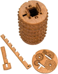 The wooden Cryptex is a thoughtfully designed mechanical puzzle made of 57 precision parts from natural birch wood. The rotating letter rings create a combination lock that opens when the correct code is aligned. Inside is a secret compartment (2 × 2 × 8 cm) ideal for a small surprise, note, or tiny gift.
