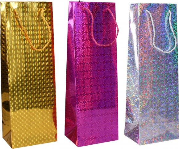 Elegant M-size bottle gift bag (12 × 34 × 9 cm) in 6 colors. Versatile year-round design for stylish presentation of wine or sparkling wine.