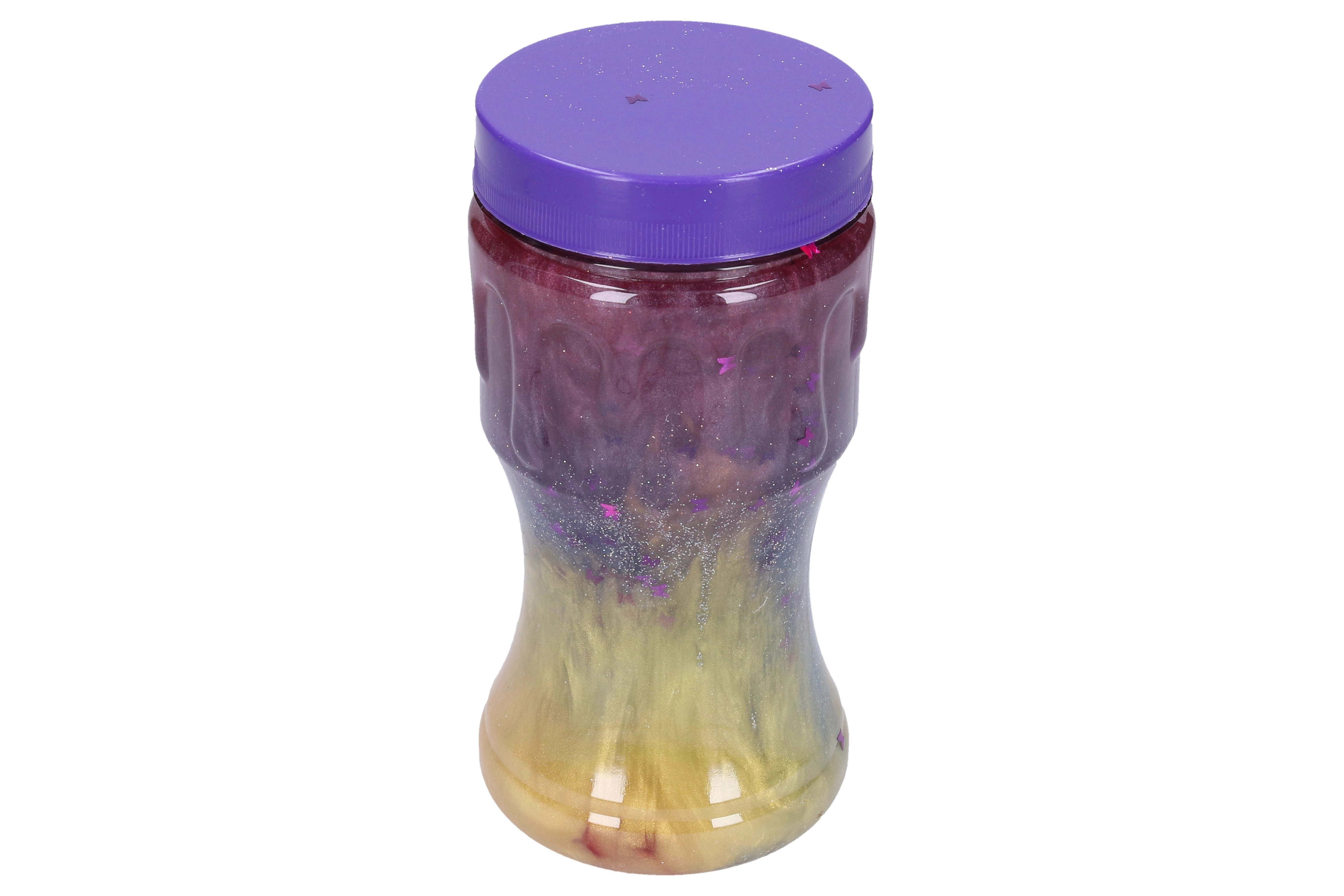 Multicolored swirls with glitter and star confetti create a stunning visual show with every move of the slime.