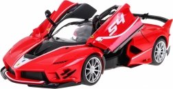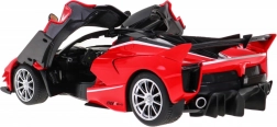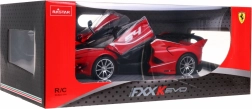 The licensed Ferrari FXX K Evo RC car in 1:14 scale delights with realistic detailing and excellent driving performance. It offers precise control forward/backward and left/right, functional front and rear lights, independent suspension for stability, and manually opening doors for a maximally authentic experience.