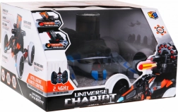 Experience action-packed fun with this off-road RC crawler with shooting for kids aged 5 and up. The vehicle operates on 2.4 GHz, drives in all directions, features a 360° rotating turret, a laser sight for precise aiming, and a magazine for up to 50 pellets. Thanks to the large rubber wheels and suspension, it handles uneven terrain with ease. Includes light and sound effects and a hit sensor—after three hits, the vehicle “shuts down” and the battle can start again.