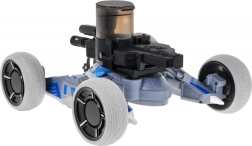 Large rubber wheels with anti-slip tread and functional shock absorbers ensure smooth driving indoors and outdoors. The integrated hit detection system registers hits—after the third hit the vehicle shuts down and needs to be restarted, adding excitement and fair rules to the game.