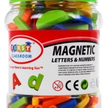 Discover creative learning through play. This rich set in a practical plastic tub with a handle offers everything for a first introduction to the alphabet, numbers, and simple math tasks. Thanks to strong magnets, the pieces hold on most metal surfaces and are great for magnetic boards.