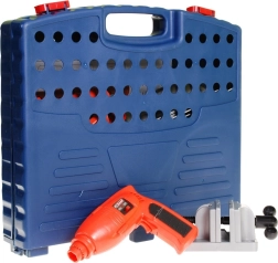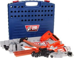 - Total of 45 pieces: drill, hammer, wrenches, saw, screwdrivers, boards, screws, nuts