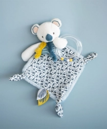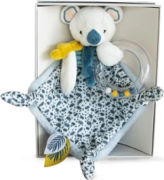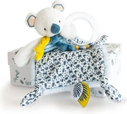 This beautiful gift set includes a plush koala Yoca, which is an ideal companion for a baby from birth. It provides a sense of security and comfort thanks to its soft material. The rattle with beads inside the ring provides stimulation and entertainment for the little ones.