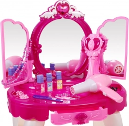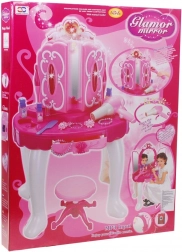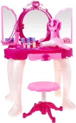 This interactive pink vanity turns every playtime into a magical beauty ritual. The magic infrared wand can open the side mirrors, and a princess appears in the main mirror while lights and melodies create a fairy-tale atmosphere. Thanks to the MP3 input, kids can play their favorite songs for even more fun.