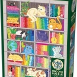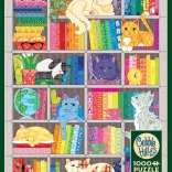 Enjoy a relaxing time assembling an original puzzle featuring an embroidered blanket full of rainbow cats. Thanks to the asymmetrical and unusual piece shapes, the assembly offers a greater challenge while still being great fun. The box also includes a large-format reference poster for easier puzzling.