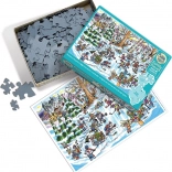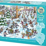 The COBBLE HILL Hockey Village family puzzle is designed so the whole family can enjoy building at once. Large pieces are concentrated in one part of the image and are great for younger children, medium pieces for older kids and grandparents, and the smaller pieces for adults and more experienced puzzlers. The colorful winter illustration with hockey and skating on the pond feels optimistic and also looks great as a finished picture.