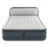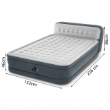 The built-in electric pump enables quick and effortless inflation and deflation. The pleasant velour surface is gentle on the skin and improves sheet grip. The integrated inflatable headboard provides support for reading and relaxing. The bed comes with a carry bag and a repair patch.