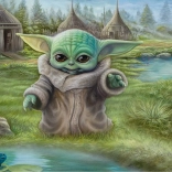 - Artistic treatment by Thomas Kinkade – a detailed, atmospheric scene featuring The Child (Grogu).