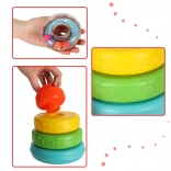 High-quality plastic with no sharp edges ensures safe play even for the youngest. The rings can be stacked into a pyramid or used separately for sorting and exploring textures — a great choice for Montessori activities at home and in preschool.