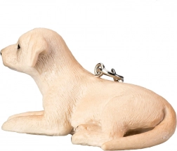 The figurine captures the details of a Labrador puppy with realistic fur texture and expression.