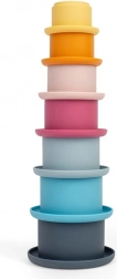 A colorful set of seven stacking cups made from 100% food-grade silicone, completely plastic-free. Ideal for the bath, sand play, and at home. Patterned holes in the bases create a waterfall effect, helping kids practice fine motor skills, hand–eye coordination, and color recognition. The material is durable, non-toxic, easy to clean, and dishwasher safe.