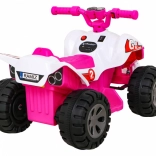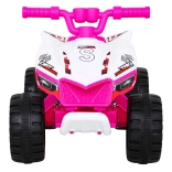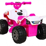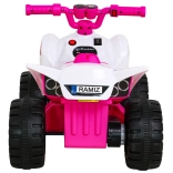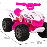 A stylish kids’ battery-powered quad in pink and white delivers safe fun for the youngest riders. The powerful 25 W motor, 6 V / 4.5 Ah battery, and stable plastic wheels ensure smooth riding forward and backward. An ergonomic seat and simple throttle-in-grip control support the development of motor skills and balance.