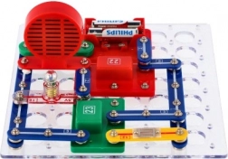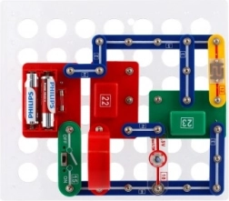 This educational electronics kit guides you from simple connections to more advanced projects. Thanks to the clear instructions and snap connectors, you can safely assemble circuits without soldering – for example, an automatic night light, a buzzer, switches, or simple alarms.