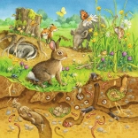 This puzzle offers a glimpse into the forest animals and their behaviors, including rabbits, foxes, and wild boars around their natural burrows.