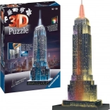 Discover the iconic Empire State Building as a light-up 3D puzzle from RAVENSBURGER — a Night Edition with LEDs that change colors. Thanks to EasyClick technology, sturdy plastic pieces fit precisely, and the 48.5 cm tall model holds together without glue.