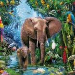 Completing the puzzle reveals a lively scene with elephants and various birds in a natural jungle setting. This offers both visual delight and educational value.
