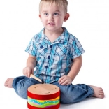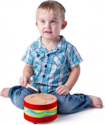 A colorful wooden drum for kids will delight all little musicians. It develops rhythm, hand–ear coordination, and supports creativity. It includes a wooden drumstick, the drum has a diameter of 18 cm, and for stability it has three rubber feet. Suitable for children from 3 years.