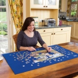 The blue felt surface keeps pieces in place, protects them during storage and transport, and provides a contrasting background for better visibility while puzzling. The mat is easy to maintain – it can be ironed on the lowest setting through a thin fabric and hand-washed in cold water (do not wring, do not tumble dry).