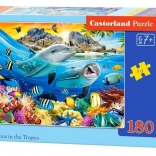 Once completed, it forms a detailed image of tropical dolphins, perfect for display in a child’s room. The puzzle is made from quality material with precise die-cuts so the pieces fit and hold together well.