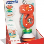 The Interactive Rattle Hungry Dino by CLEMENTONI BABY is an ideal companion for fun at home and on the go. Children are engaged by pleasant melodies, rattling sounds, and tactile features that support natural sensory development. With its practical mounting options, the toy can be easily placed on various surfaces and is always within reach.